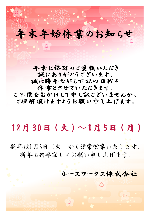 2025/12/8 年末年始休業のお知らせ(こちらをクリック)